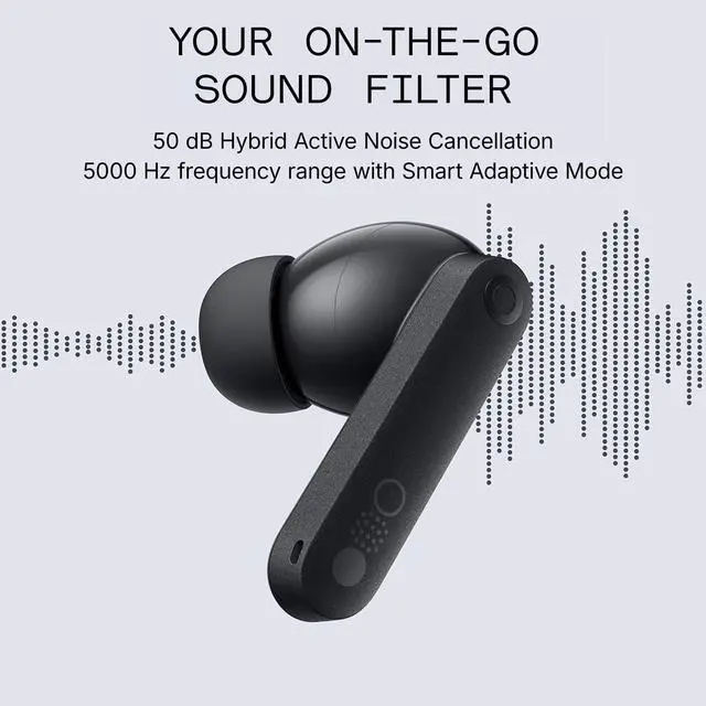 These rechargeable in-ear wireless earbuds have a smart dial on the earbuds case for noise cancellation, volume and playback control. Press the dial to control noise cancellation, access voice assistant, enable low-latency mode, or mute the microphone. Your ON-THE-GO smart lifestyle at your most convenience.