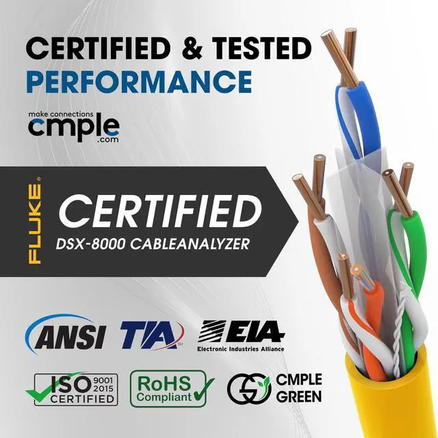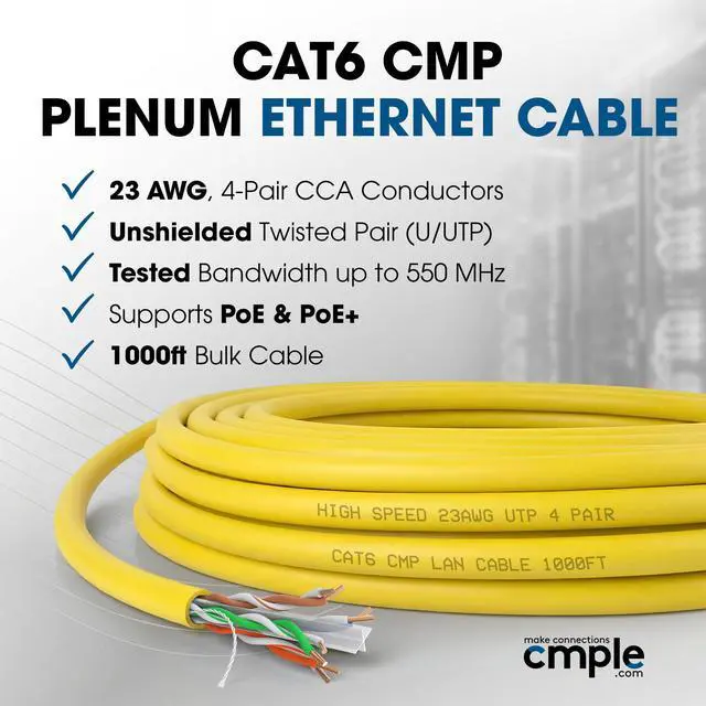 Upgrade your network with the Cmple Plenum Cat 6 Ethernet Cable, designed for high-speed, reliable performance in commercial and residential installations. This 1000ft bulk Ethernet cable is CMP-rated for plenum spaces, ensuring superior safety and compliance with fire codes.