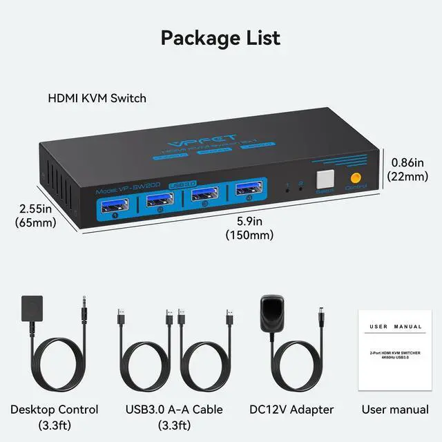 To drive peripherals with a maximum power of 10W, we use a 12V/1A power adapter, which can provide a more powerful and stable drive. Other KVM switches only support 5V/1A adapters. When using high-power