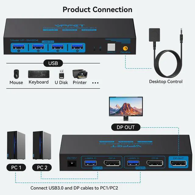 Displayport Kvm Switch 1 Monitors 2 Computers
