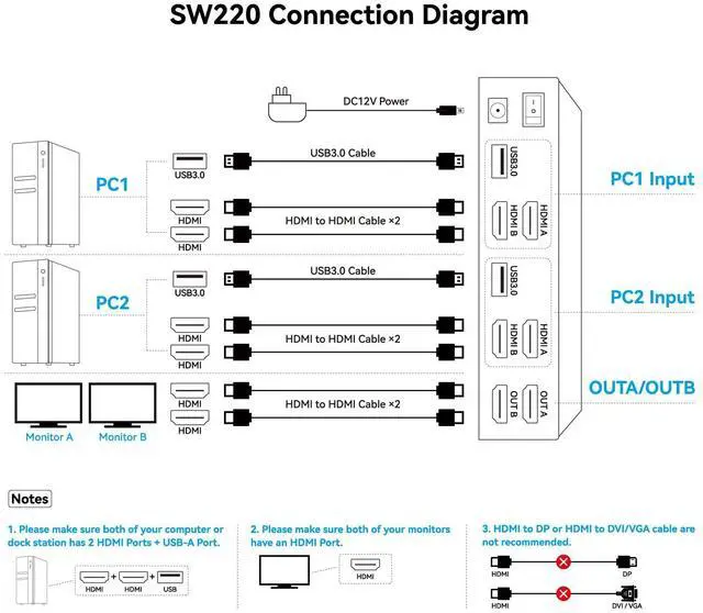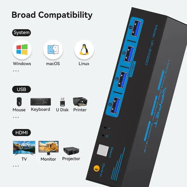 HDMI KVM Switch 2 Monitors 2 Computers 4K@60Hz
