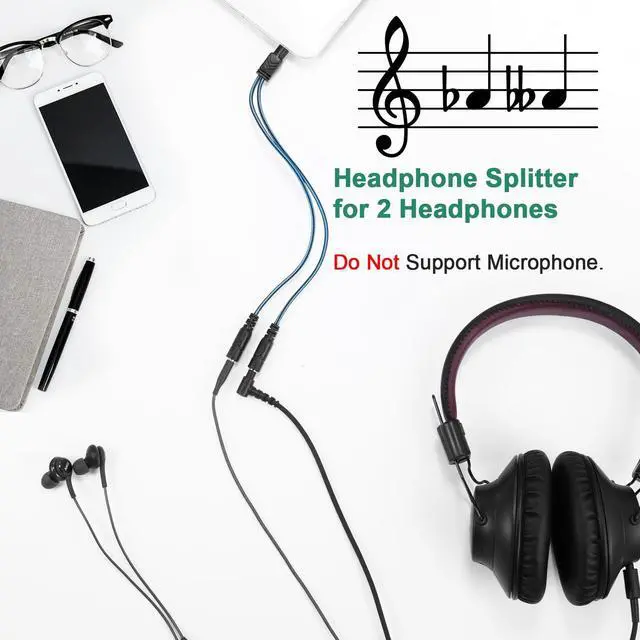 Splitter for Audio Sharing: 3.5mm Y Splitter is perfect for audio sharing. The Double Headphone Jack Adapter splits audio from one source into two outputs and allows you to use two headphones, earphones or speakers simultaneously. The Dual Headphone Aux Splitter is ideal for sharing music, movies, video or gaming with your partner when on the plane, or adding two headphones/speakers to your PC/smart TV.