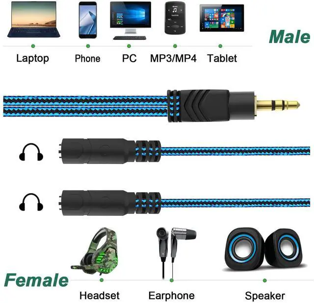 Travel Ready: 27cm/10.5in length, portable to take this 3.5mm Audio Splitter Cable around. Easy to put into pocket or travel bag. The 1 Male to 2 Female 3.5mm Y Splitter lets you share music with your partners on the trip.