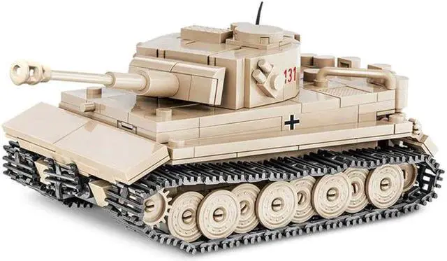 The COBI block Tiger 131 has been reproduced with attention to detail in a 1:48 scale model. It has movable elements such as: turret and gun barrel, as well as rotating wheels and tracks. The advantage of the set consisting of 350 elements is a solid structure that faithfully reflects the original shapes of its historical inspiration. Our miniature tank has been covered with high-quality prints that do not wear off. The museum Tiger 131 from Bovington completes our collection of miniature tanks made in 1:48 scale modeling. Thanks to our small series, your collection will fit anywhere! Our tanks are perfect for mature enthusiasts of military technology and everyone, regardless of age, who loves history and block construction!