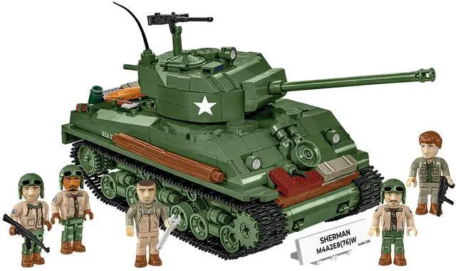 Build an iconic American tank with a full 5-man crew! The M4A2E8 Sherman, also