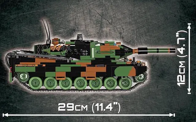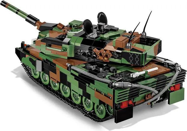 The Leopard 2 A5 is a German basic tank prototype. This new model from COBI is faithfully reproduced from 945 COBI building blocks and realistically reflects the look of its museum counterpart. Moving elements such as the tank's turret and barrel, rotating wheels and tracks as well as completely new, opening hatches allow all military fans to enjoy the model. The engine of the tank has also been opened, which can be viewed by opening the service hatch. Every adult enthusiast of history and armored weapons will surely be happy to add this model to his collection.