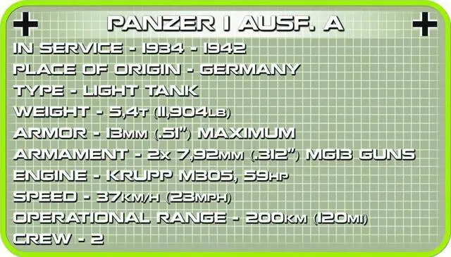 The Panzer I was a light tank produced for Germany Army in the 1930s; short for the German Panzerkampfwagen I, it was used in WWII In North Africa and Europe by the Axis Powers