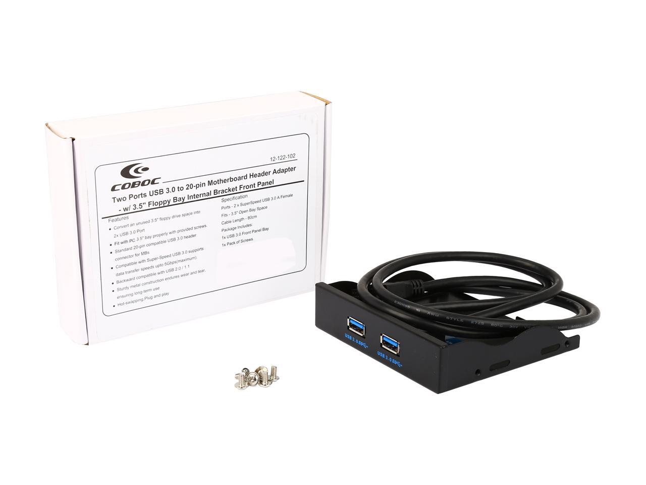 Coboc 3.5FP-U3-20PSPL2 Dual Ports USB 3.0 to 20pin Header 3.5" Floppy Bay Internal Bracket Front Panel - 3.5"tray USB 3.0 20pin to 2 Ports Type A Female