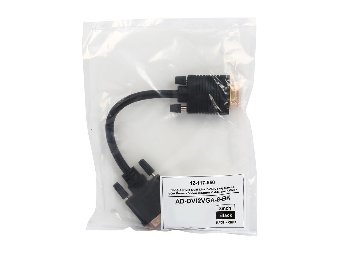 Coboc AD-DVI2VGA-8-BK Dongle-Style 8 inch Black Color Dual Link DVI-I(24+5) Male to VGA Female Analog Video Adatper,Gold Plated,M-F