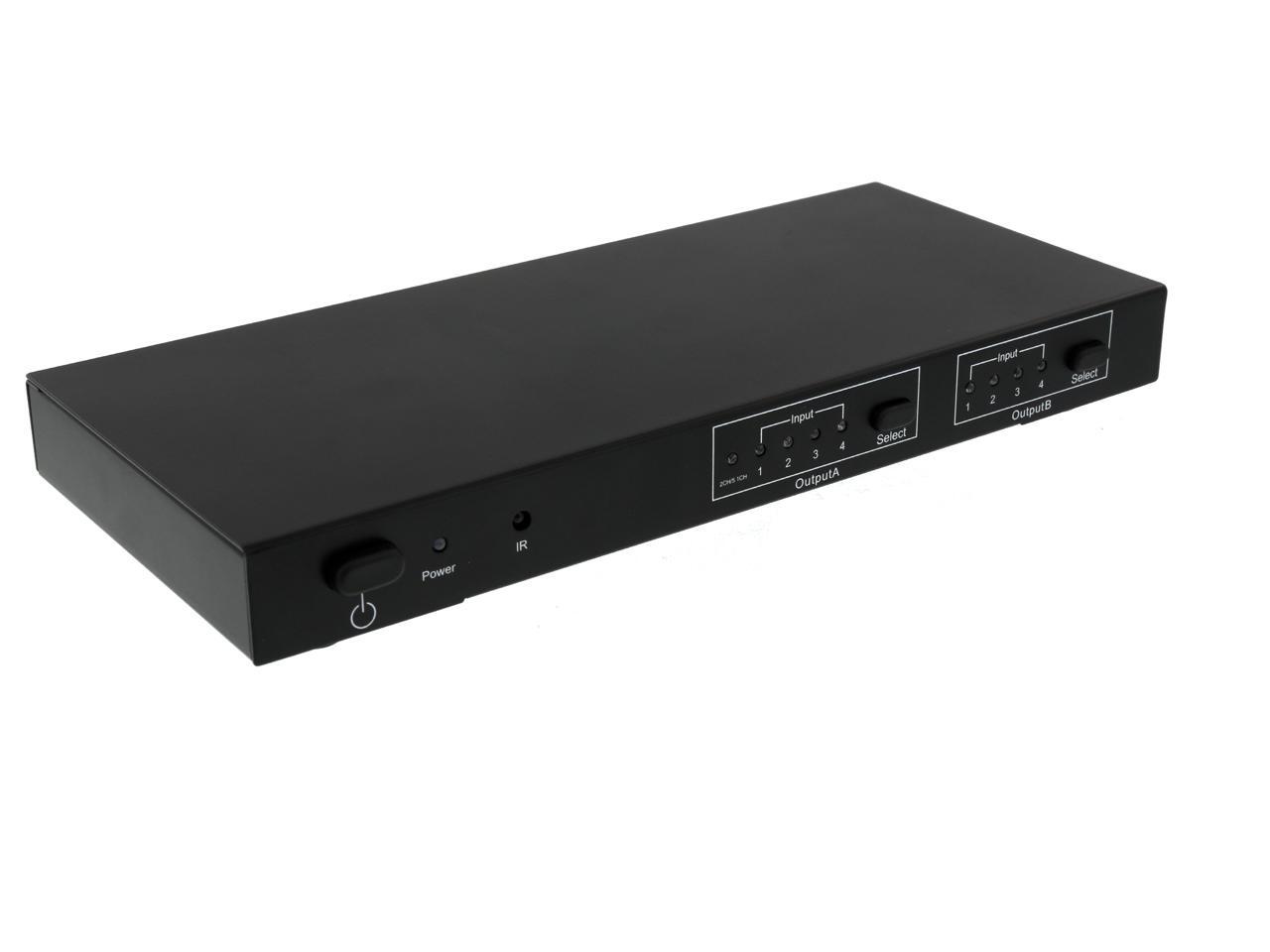 Coboc HM-MATRIX-4X2 2 Ports 4 in 2 out Amplified 4x2 Ture Matrix HDMI® Switcher & Splitter w/ 3D HDCP 1080P and IR Remote,Extract SPDIF Digital Surround(5.1CH) or Stereo(2.0CH)) Audio Output