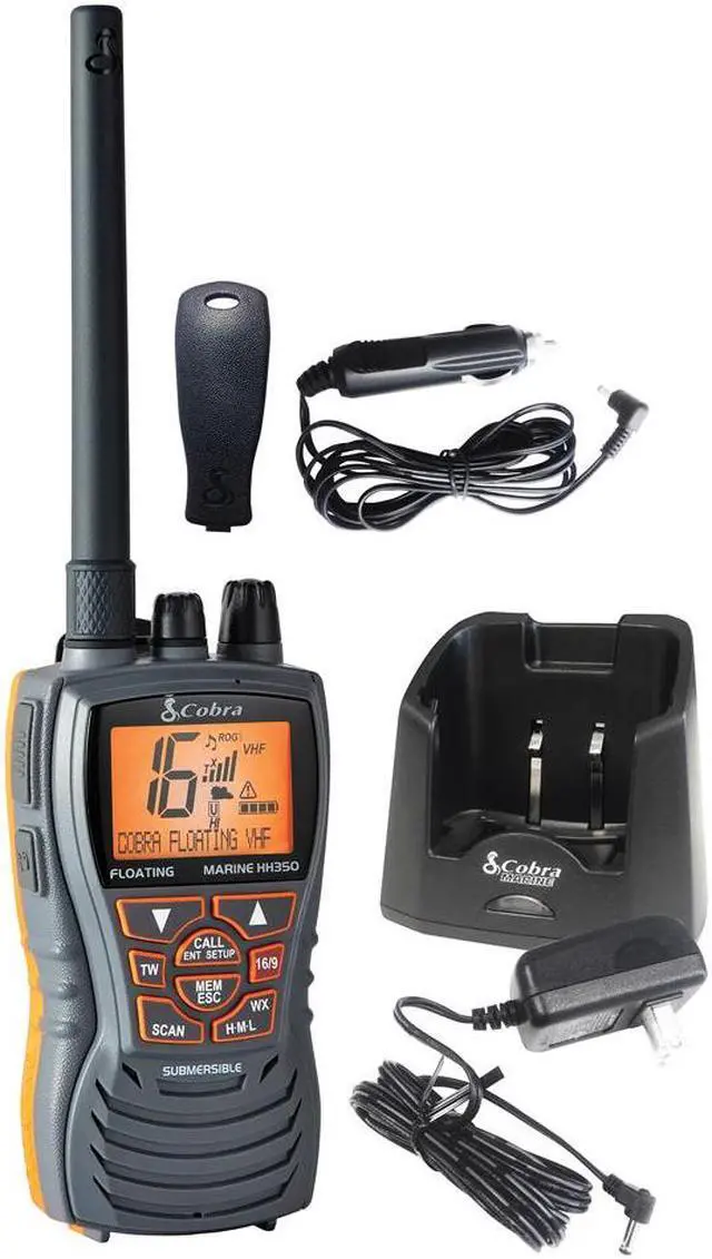 MR HH350 FLT Floating VHF RadioFloatingNever lose your radio. Floating design and orange core makes retrieving radio easy if dropped overboard.6 Watt VHFSelect between 1, 3 and 6 Watts for short and long range communication.Ultra-Compact DesignErgonomic and compact design is easy to hold and intuitive to operate.All NOAA Weather ChannelsInstant access to national All Hazards and weather information, 24 hours a day.Noise-Canceling MicrophoneBlock background noise for clearer conversations.BURPVibrates water out of the speaker grill and improves speaker performance.Features:FloatsNoise canceling microphone6W VHFUSA, Canada and International ChannelsAll NOAA Weather ChannelsWeather AlertBURPRated SubmersibleExternal speaker/microphone jackInstant Channel 16Unlimited memory channelsTri-WatchScanMemory scanSignal Strength MeterButton/Key LockBattery with Charge ContactsLarge, illuminated LCD display3-Year Warranty (on radio)