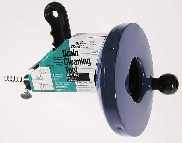 | Features | * Opens clogged lavatories, sinks, showers and tub drains * Molded poly rotating ribbed and pistol grip handles * Zinc-plated lock-tight thumbscrew * High grade, high carbon, non-kink, rust resistant spring steel wire with open-wound boring head * Self storing metal canister * 1/4" diameter cable * Cleans 1-1/4" to 2" lines up to 25' long |
