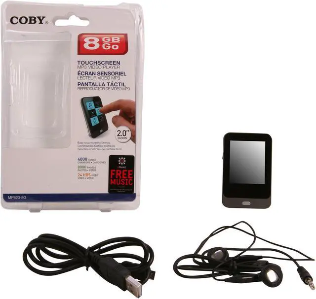 | Additional Features | Use your fingers to browse and play your media library Stores 2000 songs, 4000 photos, or 24 hours of video ID3 and LRC support for song and synchronized lyric information display World clock and calendar apps included Coby Media Manager software included OSD Menu Languages: English, Spanish, French, Portuguese, Italian, German Certifications: CE, FCC |