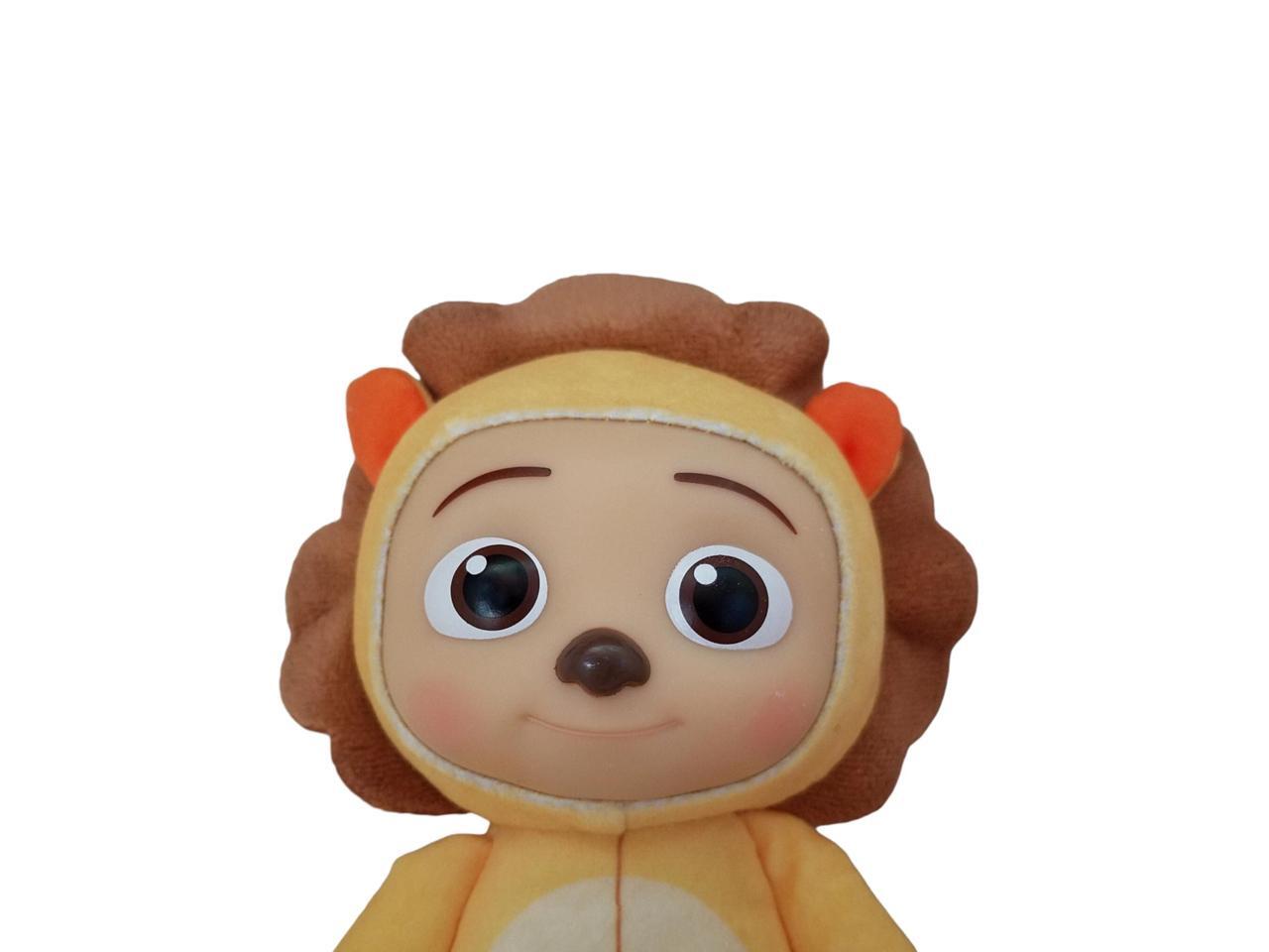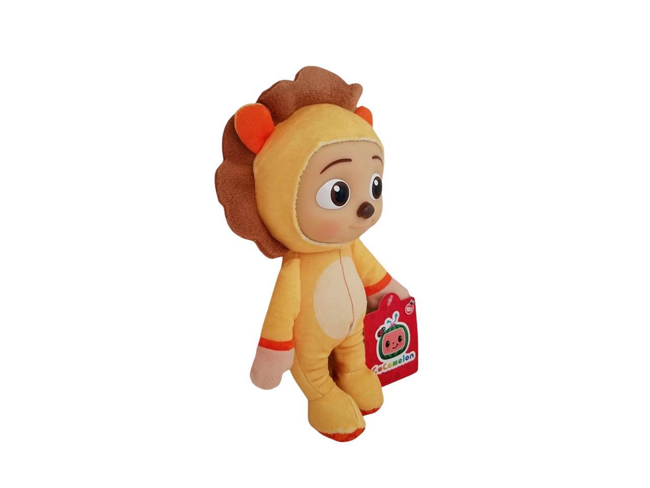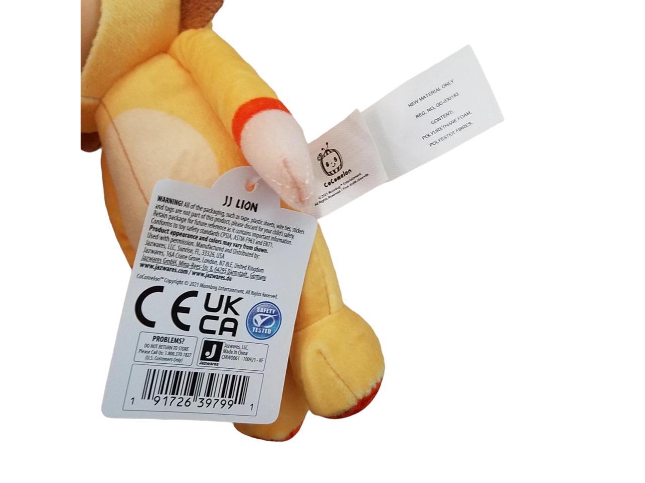 Soft and cuddly 8-inch Cocomelon JJ Lion plush doll by Jazwares, made from gentle materials and designed for toddlers. Features JJ in a lion costume with original tags. Ideal for bedtime, playtime, gifting, or collecting. Lightweight and easy to carry, perfect for little hands.