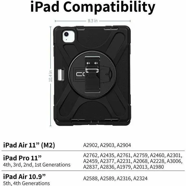 CODi Rugged Case - Integrated Screen Protector for iPad Air 11" (M2), iPad Pro 11" (4th, 3rd, 2nd, 1st Generation), iPad Air 10.9" (5th, 4th Generation) - Drop Test-certified