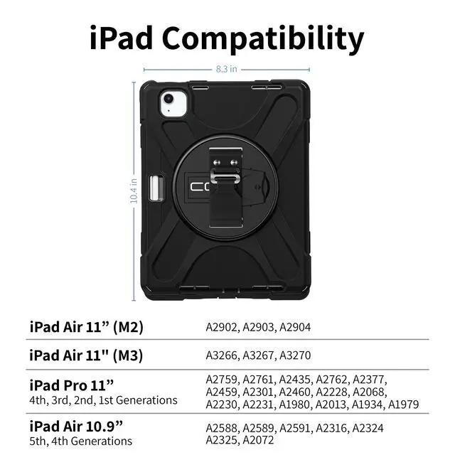 • Integrated Screen Protector for iPad Air 11" (M2), iPad Pro 11" (4th, 3rd, 2nd, 1st Generation), iPad Air 10.9" (5th, 4th Generation)