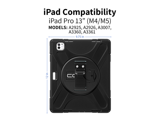 CODi Rugged Case for iPad Pro 13” (M4, M5) with Kickstand and Hand/Shoulder Strap