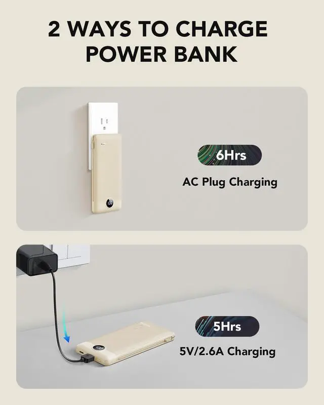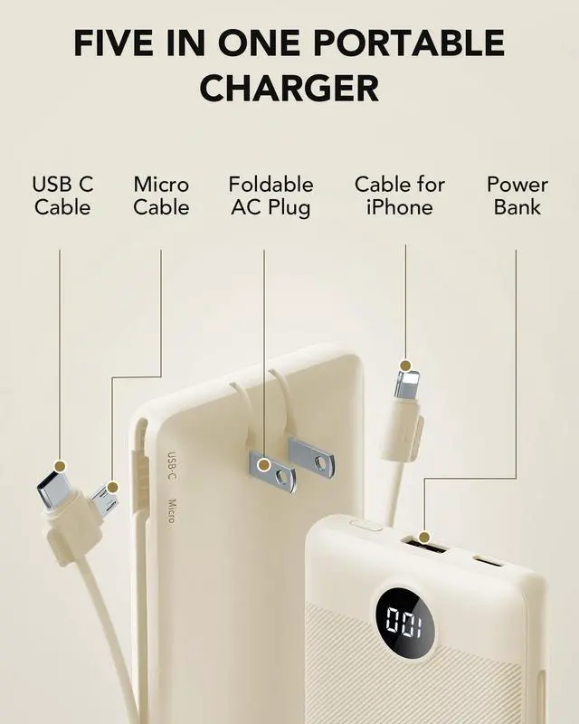10000mAh Portable Charger With Wall Plug, Fast Charging