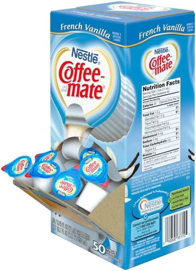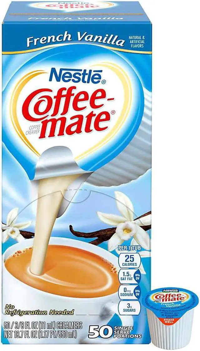 Handy, single-serve creamers require no refrigeration. Creamers are easy to use. Simply shake well, pour, stir and enjoy. Each single-serve portion contains 0.38 oz. of French Vanilla-flavored creamer.