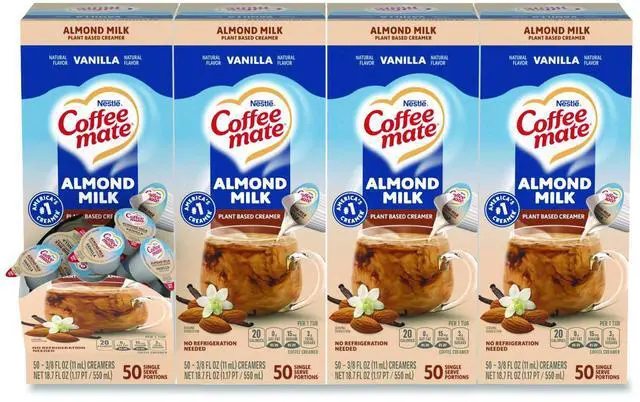 Coffee mate Almond Milk Vanilla Plant-Based Liquid Creamer Singles - Natural Vanilla Almond Milk Flavor - 0.38 fl oz (11 mL)Tub - 50 / Box
