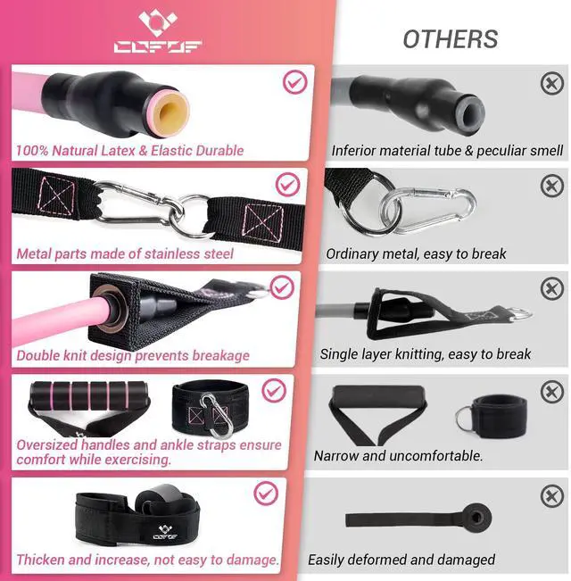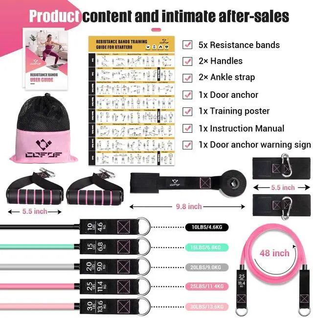 Resistance Bands for Women: Our exercise bands are based on market conditions to upgrade women's resistance bands, to upgrade the stretching strength of the resistance band set (each resistance band represents a different resistance level, 10 lbs, 15 lbs, 20 lbs, 25 lbs, 30 lbs.) This helps you to easily adjust the resistance levels required for various muscle exercises according to the intensity of different sports. One kit can meet all your exercise needs.