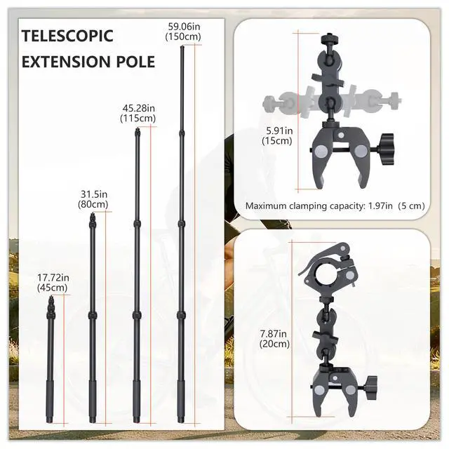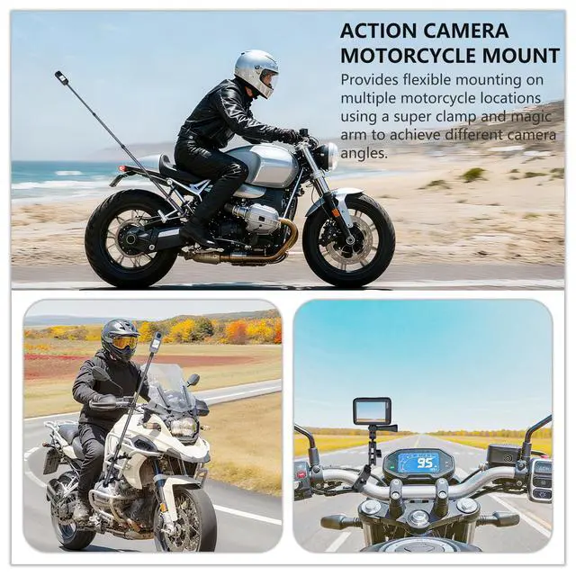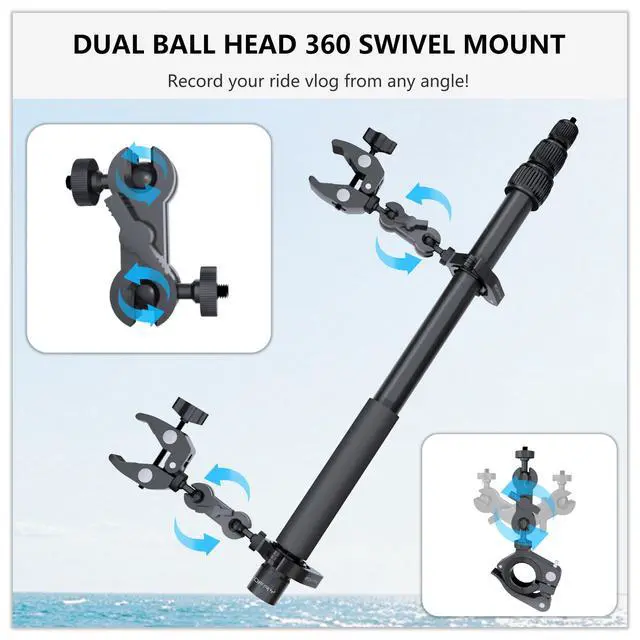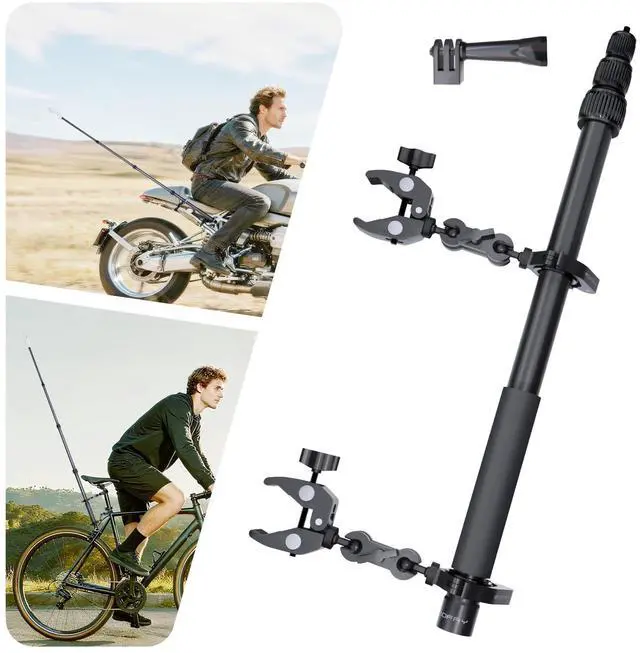 Professional Motorcycle & Bike Camera Mount Kit Engineered with premium aviation-grade aluminum alloy, this heavy-duty motorcycle camera mount ensures exceptional stability and vibration resistance. The Extension Pole Kit includes an adjustable invisible selfie stick and dual super clamps, allowing you to capture seamless,free POV footage while riding. Perfect as an Insta360 motorcycle mount, GoPro bike mount, or DJI osmo 360 camera mount, its designed for motorcycles, bicycles, ATVs, and more. With anti-slip rubber pads and reinforced joints, it withstands rough terrain and high-speed adventures