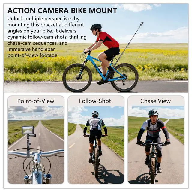 Motorcycle Camera Mount for Insta 360,Adjustable GoPro Bike Extension Pole Mount Compatible with Insta360, GoPro, and DJI Cameras - Designed for Bike and Motorcycle Riding Shots