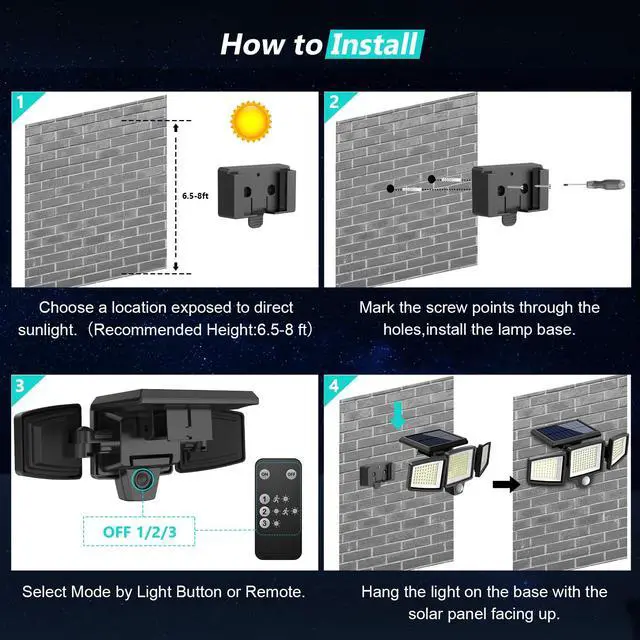 The recommended installation height is 10ft. Because the sensing distance of solar lights depends on the installation height.