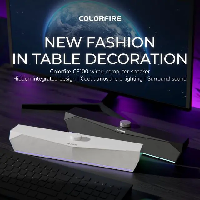 COLORFIRE CF100 wired computer speaker Hidden integrated design | Cool atmosphere lighting | Surround sound