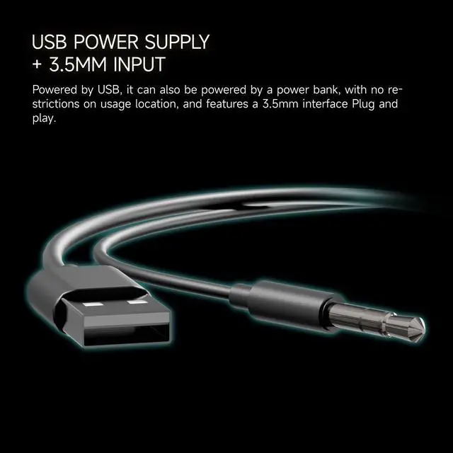 Powered by USB, it can also be powered by a power bank, with no restrictions on usage location, and features a 3.5mm interface Plug and play.