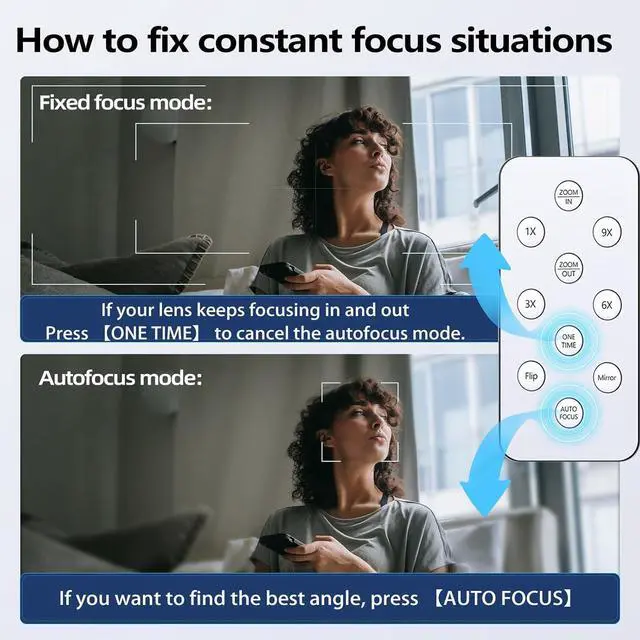 9x Digital Zoom & AutofocusIdeal for streaming, gaming, and video calls on Zoom/Skype. Easily zoom (1-9x) and pan via remote control. Adjust your view digitally to frame shots perfectly, capturing crisp details in optimal lighting.