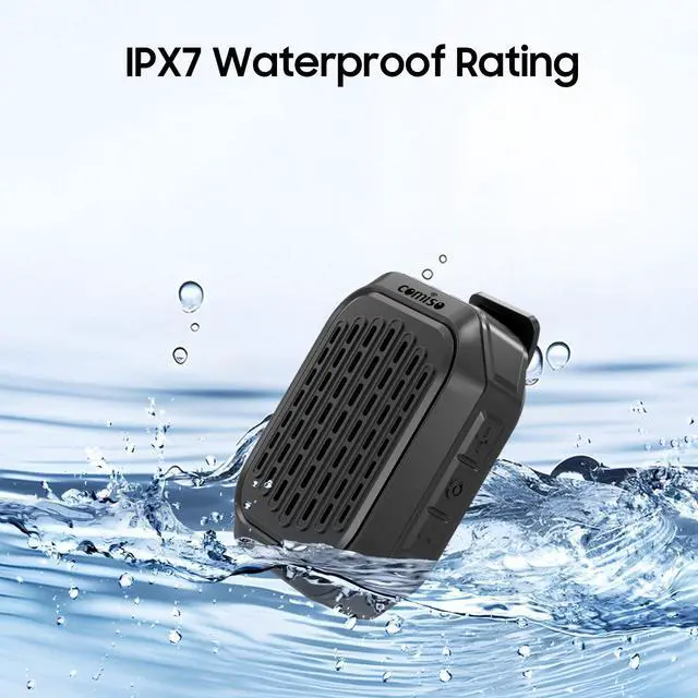 IPX7 Waterproof Speakers: M11 clip on speaker has IPX7 waterproof protection, which is available to safeguard against splashes and be immersed in water up to 1 meter deep for 30 minutes. Making it ideal for a variety of activities. Get incredible sounds at home, working or for outdoor adventures (such as biking, hiking, camping, etc).