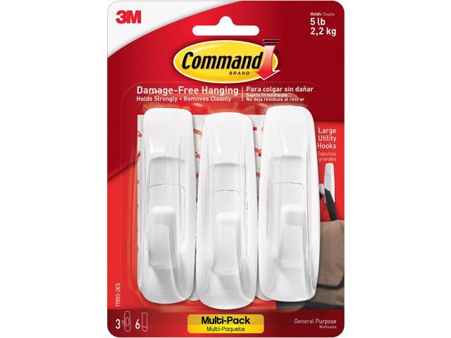 Command 170033ES Large Utility Hooks, White, 3PK