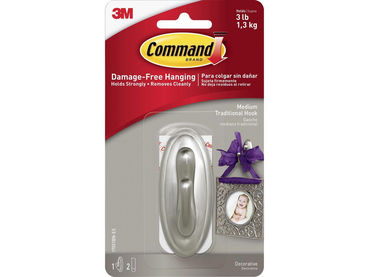 Command 17051BNES Medium Traditional Hook, Brushed Nickel