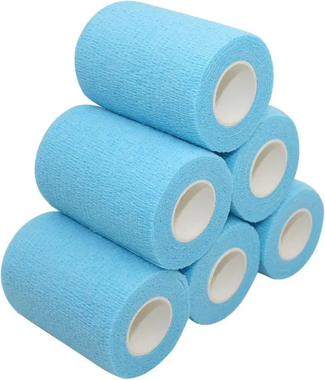 COMOmed Self Adherent Cohesive Bandage Latex 3"x5 Yards First Aid Bandages Stretch Sport Athletic Wrap Vet Tape for Wrist Ankle Sprain and Swelling,Light Blue (6 Rolls)