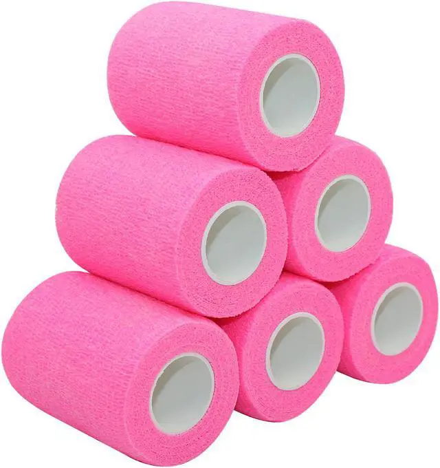 COMOmed Self Adherent Cohesive Bandage Latex 3"x5 Yards First Aid Bandages Stretch Sport Athletic Wrap Vet Tape for Wrist Ankle Sprain and Swelling,Hot Pink(6 Rolls)