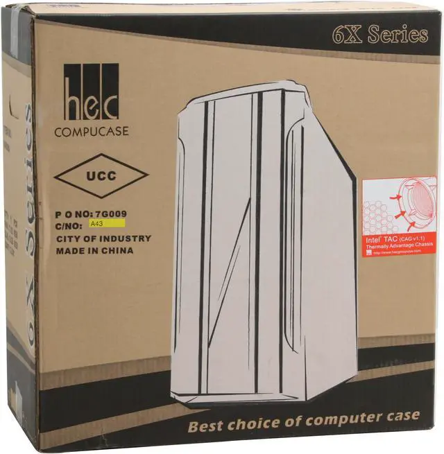 The HEC 6XR8 Mid Tower is of great value for people who are trying to build an affordable system, with its premium material and superior construction. Black exterior adds a touch of elegance and overall quality. An array of drive bays provides plenty of room for storage. Two 120mm fans come pre-installed for better system cooling. A ducted vent is positioned in the side wall to be over the CPU fan for extra cooling efficiency. So, load your system up and get back in the game with the HEC 6XR8.