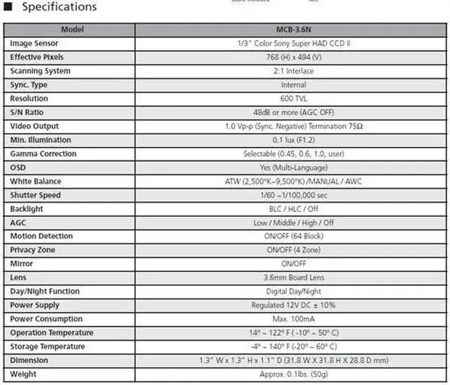 1 - Digital Day/Night 540 TVL CS Mount Camera