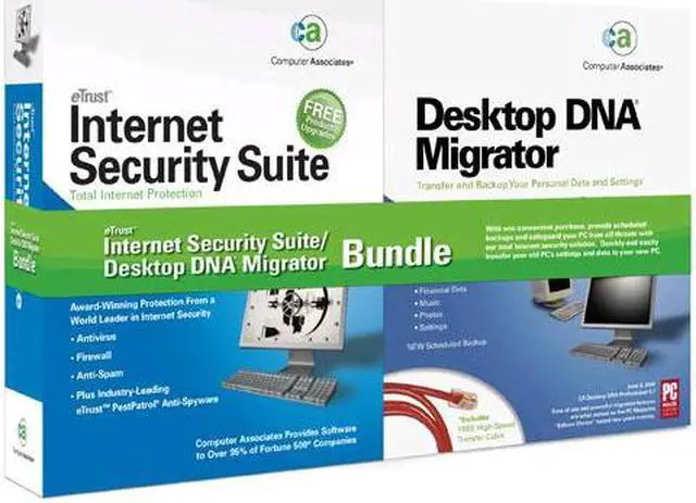| System Requirements | CA Desktop DNA- Current Version: r11 Operating System: Pentium processors or higher, Windows 95, 98, NT 4.0 or higher, ME, 2000, or XP RAM: 24MB RAM Free Disk Space: 20 MB of hard drive space (more needed to perform a migration) 24 MB RAM Internet Security Suite Bundle Operating System: Windows 2000/XP: 128MB RAM, 300MHz or higher Pentium-compatible CPU Operating System: Windows Me/98SE: 64MB RAM, 233MHz or higher Pentium-compatible CPU |