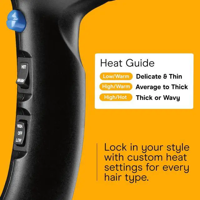 STYLE YOUR WAY: Choose from 2 heat settings, 2 speeds, and a cool shot button to lock style in place. Includes a diffuser attachment for curly or wavy styles and a concentrator for smooth and straight styles.