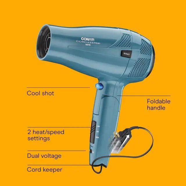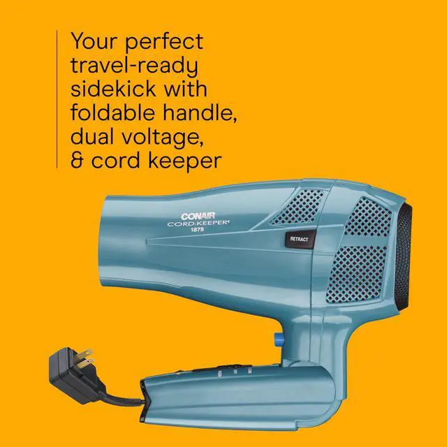 FOLDABLE DESIGN: Pack light and style anywhere with this Conair hair dryer. A foldable handle and dual voltage make it perfect for worldwide travel.