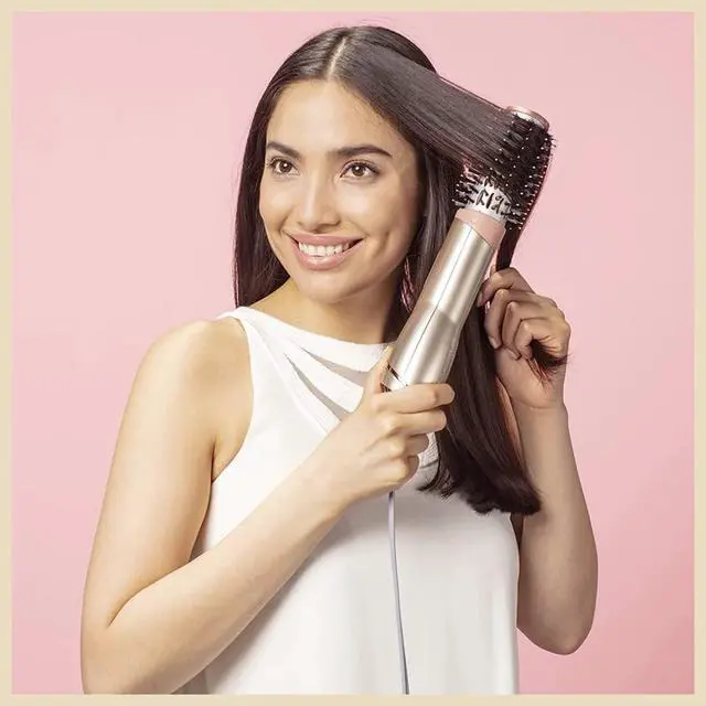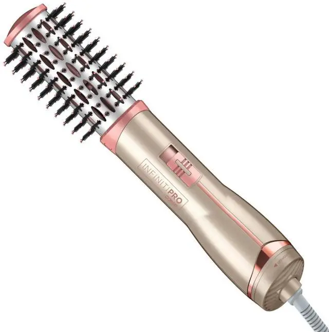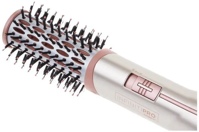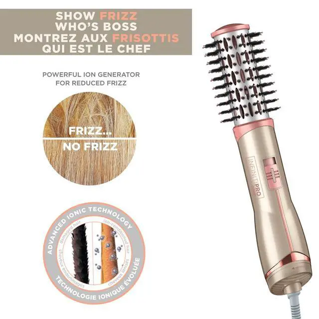 Put the power of salon styling in the palm of your hand with this versatile hot air brush. The ceramic coated, 1½-inch thermal barrel ensures even heat for exceptional performance, while ionic technology eliminates frizz, resulting in smooth, shiny, healthy-looking hair. Equipped with 2 heat settings to dry hair quickly yet gently as you style, this beauty essential features a mix of nylon and ball-tipped bristles for optimal comfort and control, plus a cool setting to lock in your style.;The product voltage arrange is 120V