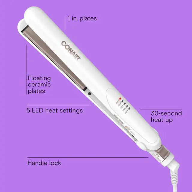 SMOOTH, STRAIGHT HAIR: Get sleek, frizz-free results with the Conair Double Ceramic 1-Inch Flat Iron, featuring even heat for polished, healthy-looking styles.