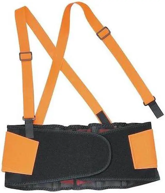 Back Support with Stay, Back Support Size 2XL, Fits Waist Size 42 In. to 46 In., Width 9-1/4 In., Material Elastic, Suspenders 1-1/2 In. Detachable Knit Elastic, Closure Type Hook and Loop, Color Hi-Visibility Orange. This item has been restricted from sale in the following state(s): []