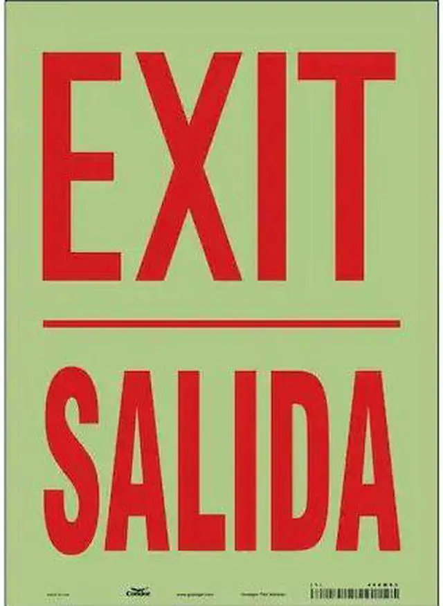 Safety Sign, Vertical Rectangle, Number of Printed Sides 1, English, Spanish, Sign Format Other Format, Sign Legend Exit/Salida, Sign Legend Background Color White, Sign Legend Style Text. This item has been restricted from sale in the following state (s): []