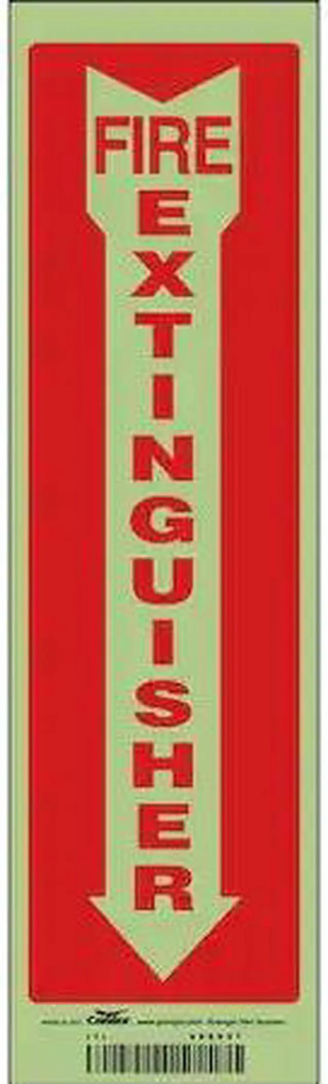 Safety Sign, Horizontal Rectangle, Number of Printed Sides 1, English, Sign Legend Fire Extinguisher, Sign Legend Background Color Red, White, Sign Legend Style Symbol and Text