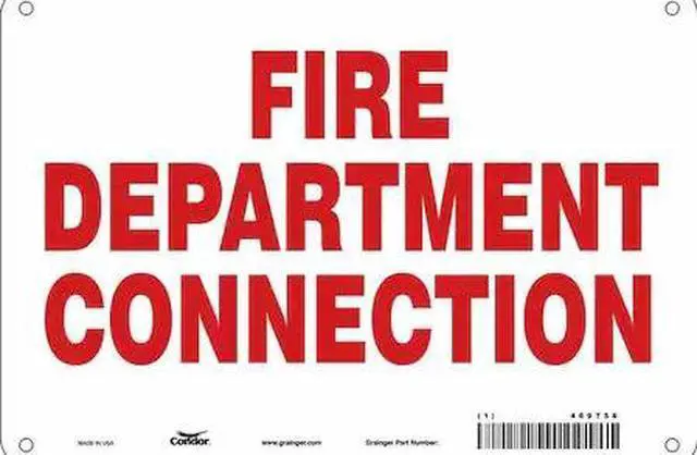 Safety Sign, Vertical Rectangle, Number of Printed Sides 1, English, Sign Legend Fire Department Connection, Sign Legend Background Color White, Sign Legend Style Text