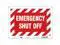 California Proposition 65: This product contains a chemical known to the State of California to cause birth defects or other reproductive harm. SAFETY SIGN FIRE AND EMERGENCY, Horizontal Rectangle, Number of Printed Sides 1, English, Sign Legend Emergency Shut Off, Sign Legend Background Color Red, White, Sign Legend Style Text