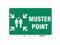 Safety Sign, Horizontal Rectangle, Number of Printed Sides 1, English, Sign Legend Muster Point, Sign Legend Background Color Green, Sign Legend Style Symbol and Text