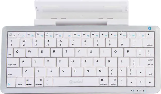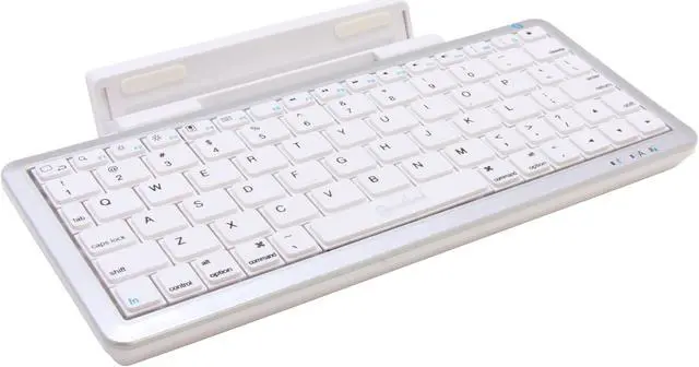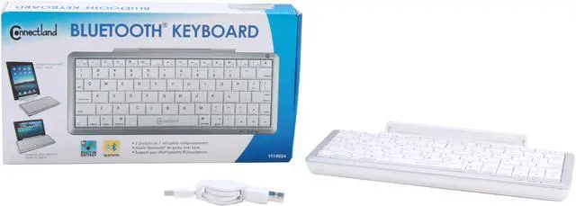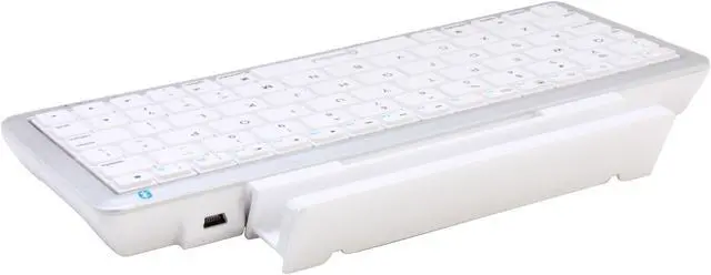 Part Number: CL-KBD23024 A compact design plus its detachable stand make this Bluetooth Keyboard-and-Stand combo set the ideal travel companion. It works flawlessly with today's latest Bluetooth devices such as Smartphones, Tablets, iPads and PlayStation 3 gaming systems. Features integrated media controls like Play, Pause, Volume up and Volume down for easy device usage. Bluetooth 3.0 GFSK Modulation Type Working Range: Up to 32 Feet in Open Space 78 Keys Detachable Stand (can be use as a stand along Table PC Holder) Power On/Off Switch Rechargeable Lithium Battery: 3.7V 320mA Input: DC: 5V/130mA Charging time: 2-3 Hours Keyboard Dimension: 8.5" x 3.75" x 0.75" Color: Silver & White